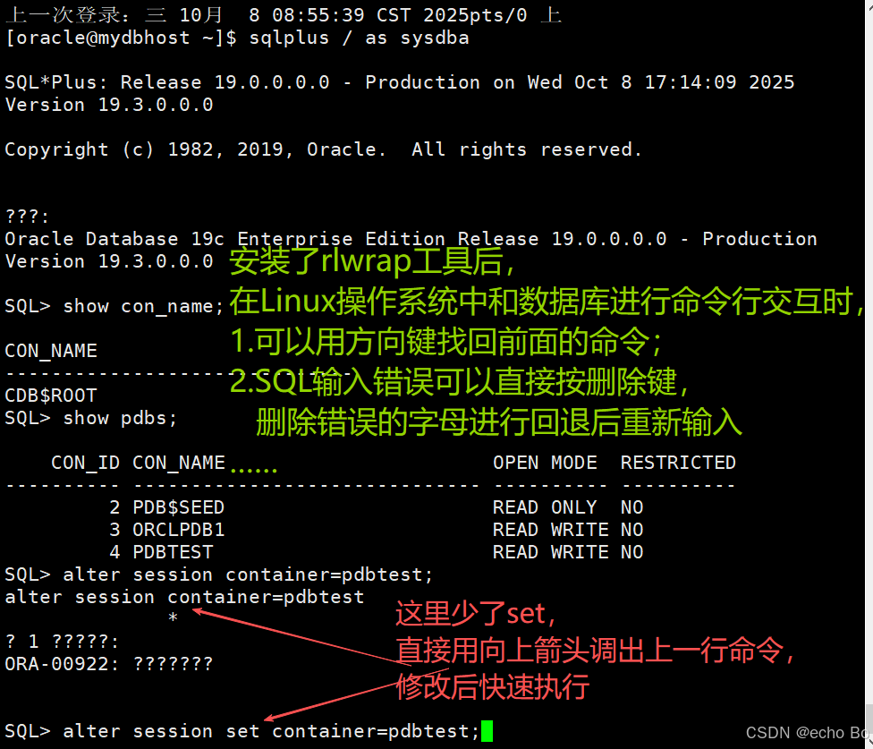 rlwrap = readline wrapper:不改你的客户端二进制,外面套一层,就能在 sqlplus/rman/dgmgrl