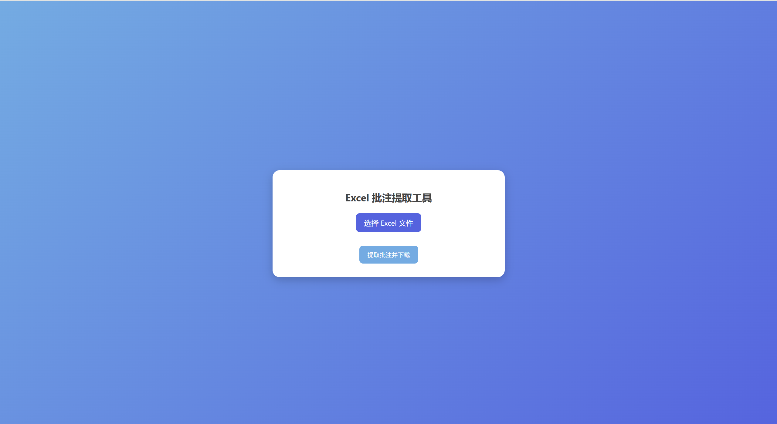 <head><meta charset="UTF-8"><title>Excel 批注提取工具</title><script src="https://cdn.jsdelivr.net/npm/xlsx/dist/xlsx.full.min.js"></script><style>body {font-family: "Segoe UI", "Microsoft Yahei", sans-serif;background: linear-gradient(135deg, #74ABE2, #5563DE);color: #333;display: flex;justify-content: center;align-items: center;height: 100vh;margin: 0;}.container {background: #fff;padding: 30px;border-radius: 16px;box-shadow: 0 6px 20px rgba(0,0,0,0.2);text-align: center;width: 450px;animation: fadeIn 0.8s ease-in-out;}h1 {font-size: 22px;margin-bottom: 20px;color: #444;}input[type="file"] {display: none;}label {display: inline-block;background: #5563DE;color: #fff;padding: 10px 18px;border-radius: 8px;cursor: pointer;transition: 0.3s;}label:hover {background: #3f4bb3;}button {margin-top: 20px;background: #74ABE2;color: #fff;border: none;padding: 10px 18px;border-radius: 8px;cursor: pointer;transition: 0.3s;}button:hover {background: #4e8bd1;}.filename {margin-top: 10px;font-size: 14px;color: #666;}@keyframes fadeIn {from { opacity: 0; transform: translateY(20px); }to { opacity: 1; transform: translateY(0); }}</style>