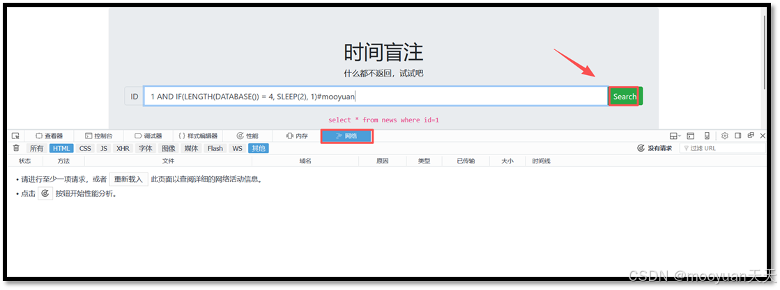 右键-查看元素-网络,在文本框内输入Payload,然后点击search,如下所示。