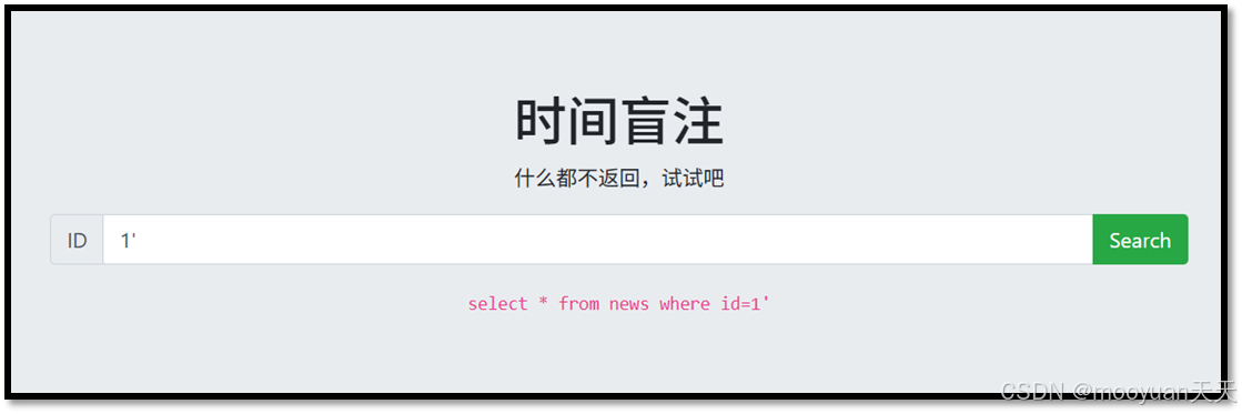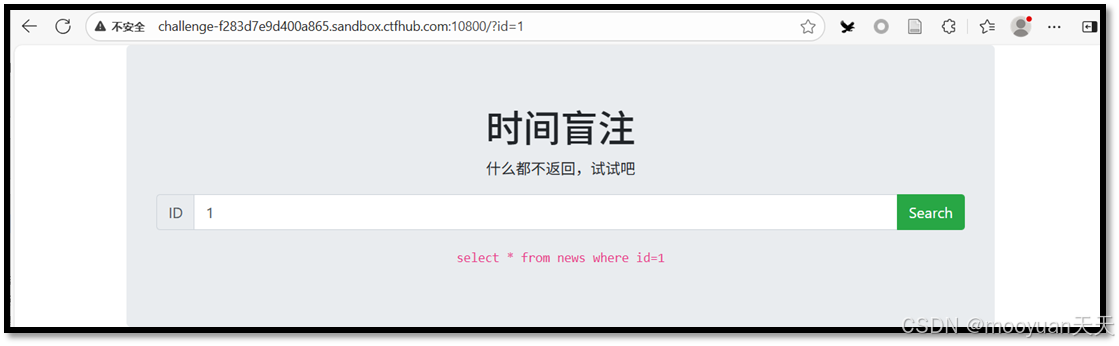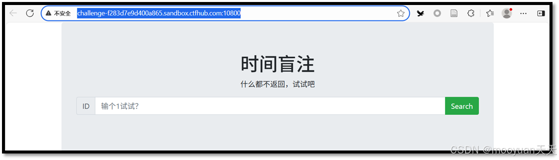 浏览器输入靶场URL链接,这就是我们的攻击目标,访问URL后页面内容明确写明"SQL时间注入",具体如下所示。