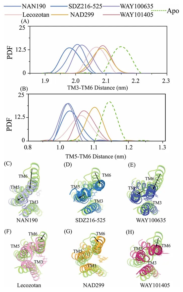 结果2、不同拮抗剂诱导5-HT₁AR发生构象变化