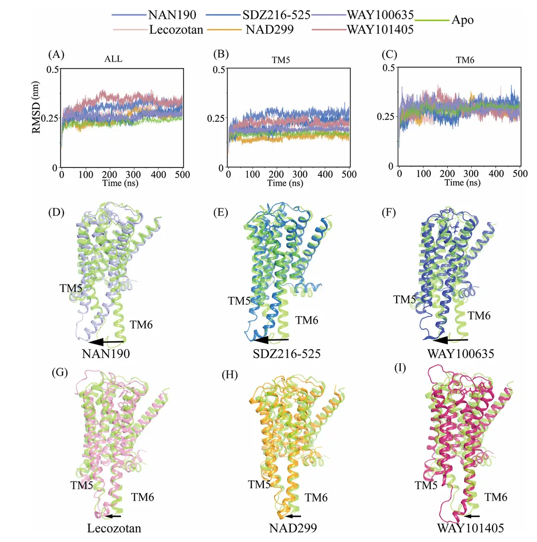 分子动力学--不同拮抗剂与5-HT1AR结合机制的研究:一项分子对接与分子动力学模拟分析