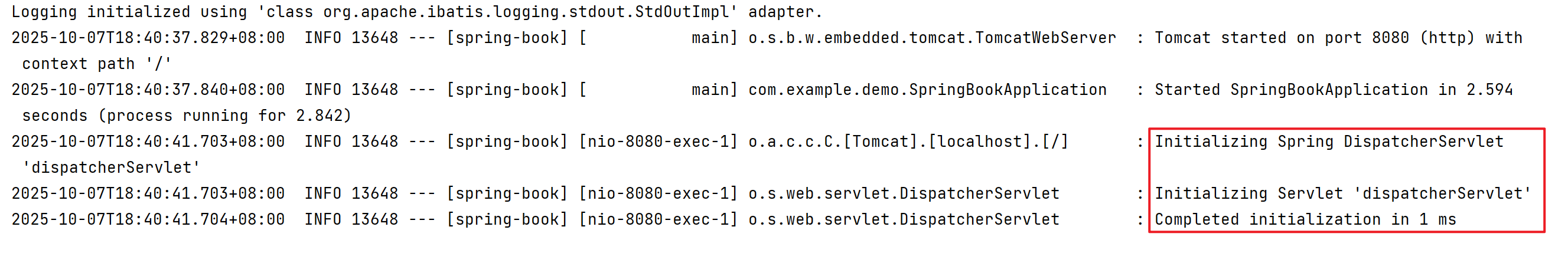 Tomcat 项目启动后会看到 DispatcherServlet 相关的日志;