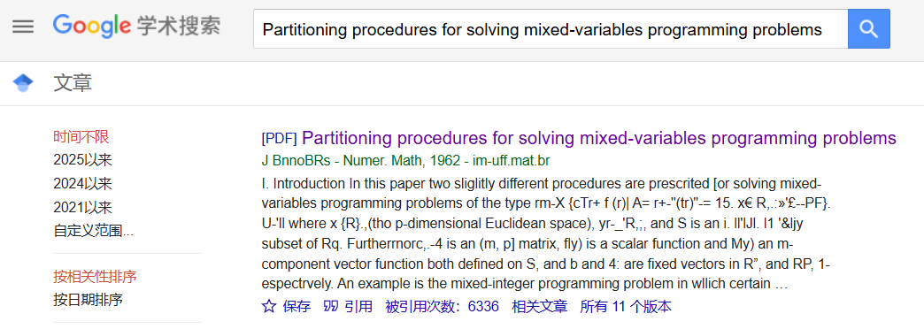《Partitioning procedures for solving mixed-variables programming problems》- 被引量 6K+
