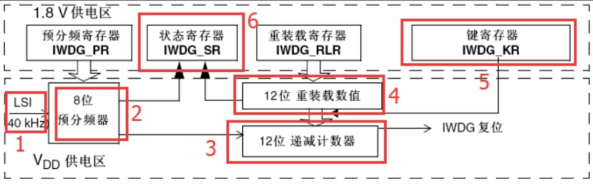 下面我们来看看独立看门狗内部结构,深入了解一下IWDG。