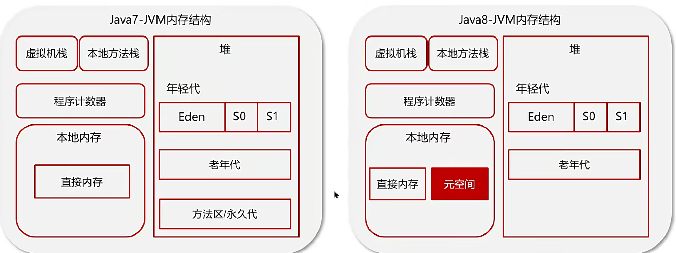 - 1.8 移除了永久代,把数据存储到了本地内存的元空间中,防止内存溢出。