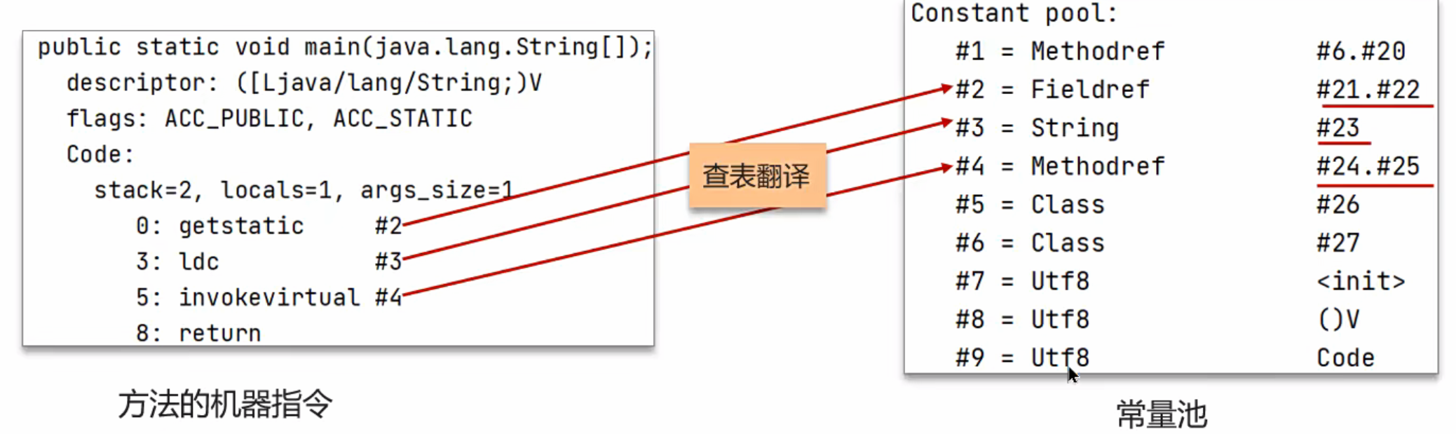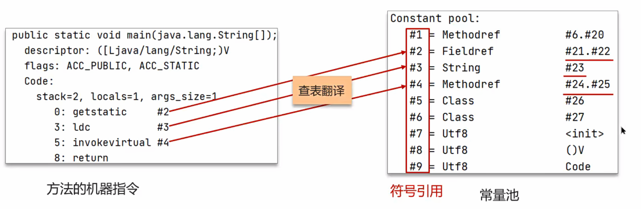 可以看作是一张表,虚拟机指令根据这张常量表找到要执行的类名、方法名、参数类型、字面量等信息。