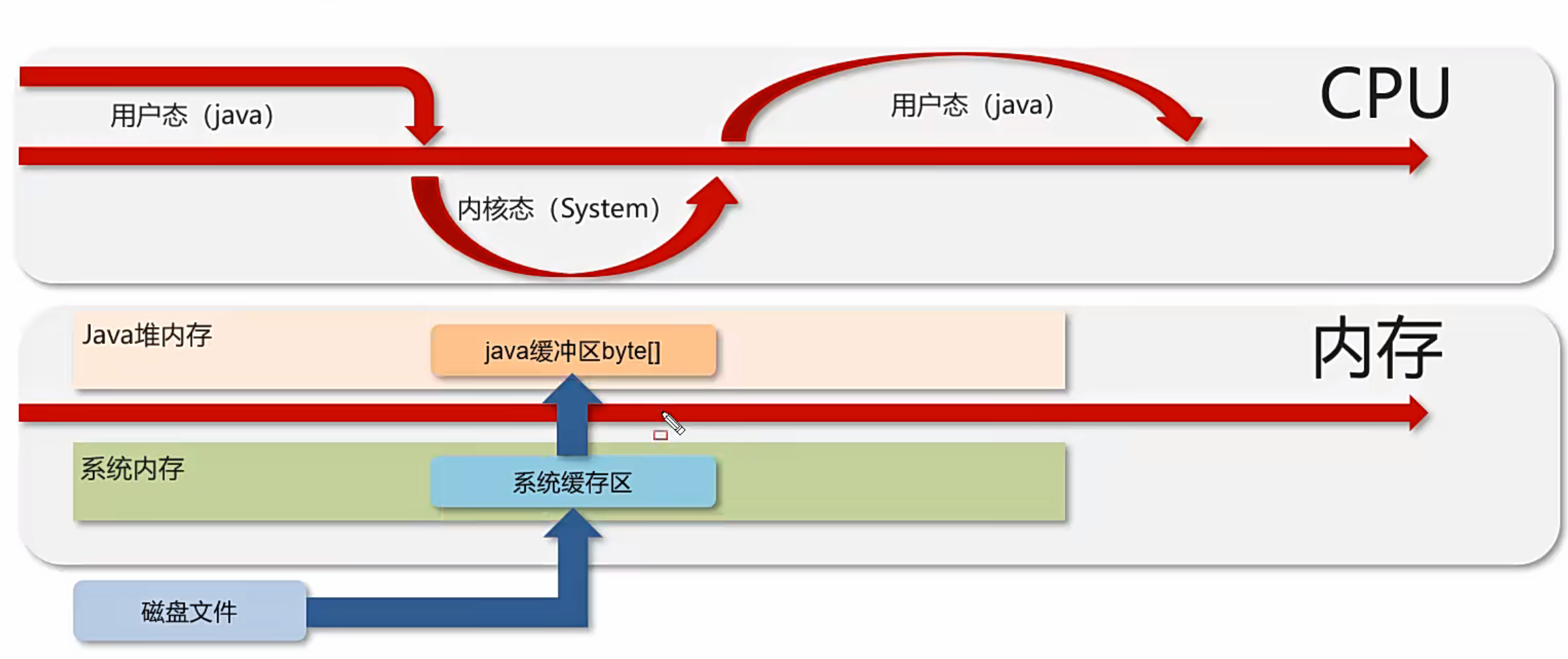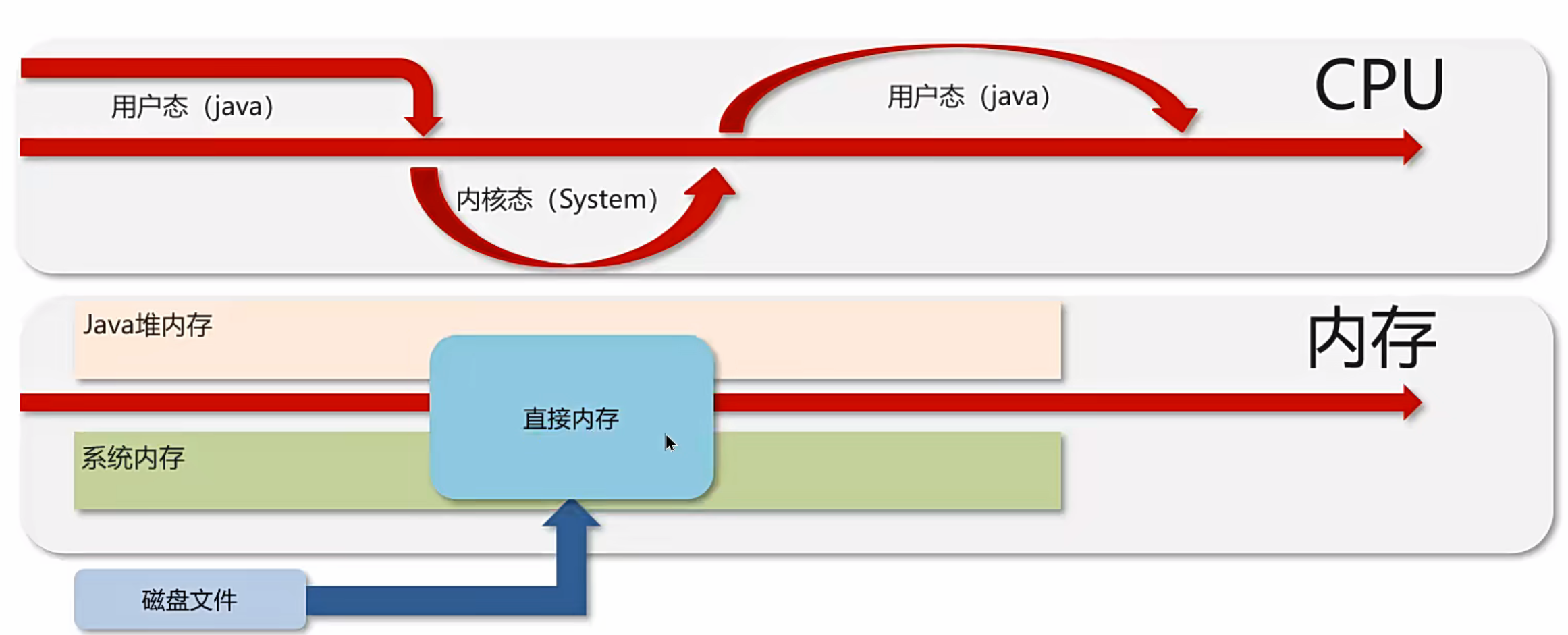 因为 Java 是无法直接访问系统缓存区的,所以系统会先将磁盘文件数据读到系统缓存区,然后 Java 堆内存在读到 Java 缓冲区中,很显然这是两次数据复制的过程,效率是不高的。