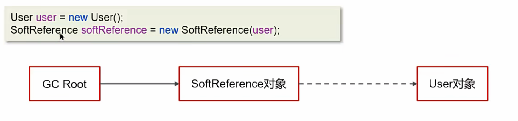 - 软引用:仅有软引用引用该对象时,在垃圾回收后,内存仍不足时会再次出发垃圾回收