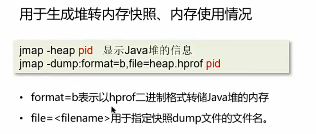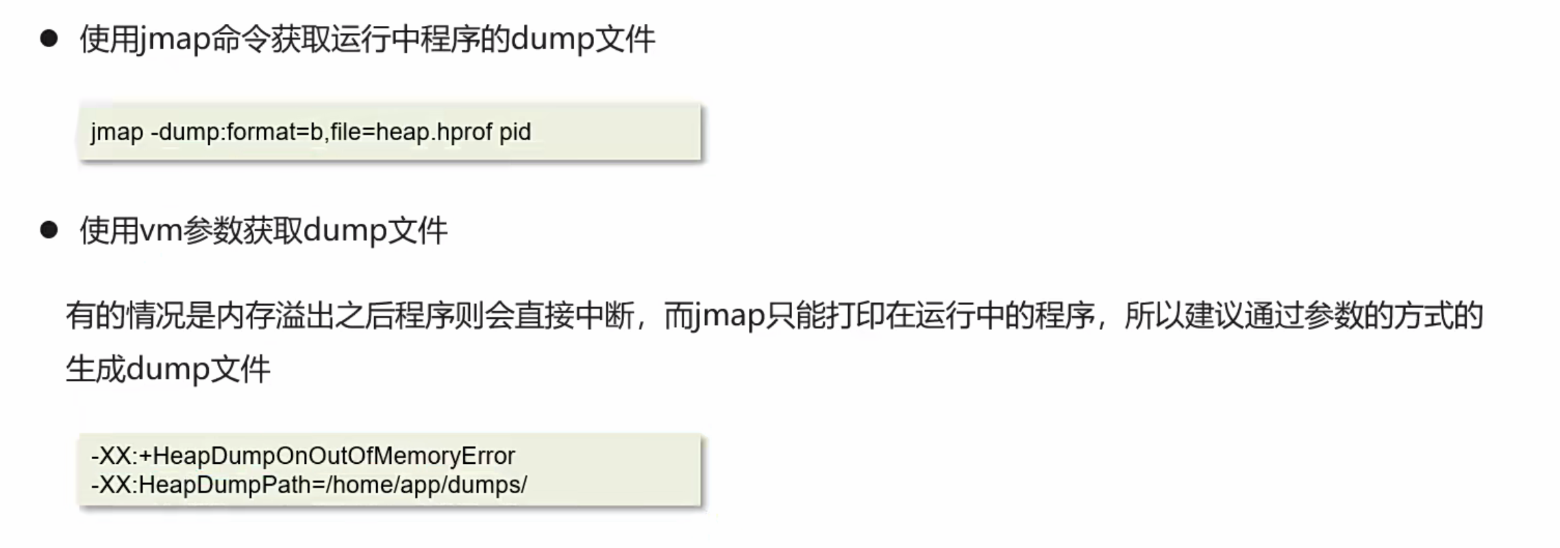 通过jmap指定打印他的内存快照dump(Dump文件是进程的内存镜像。可以把程序的执行状态通过调试器保存到dump文件中)