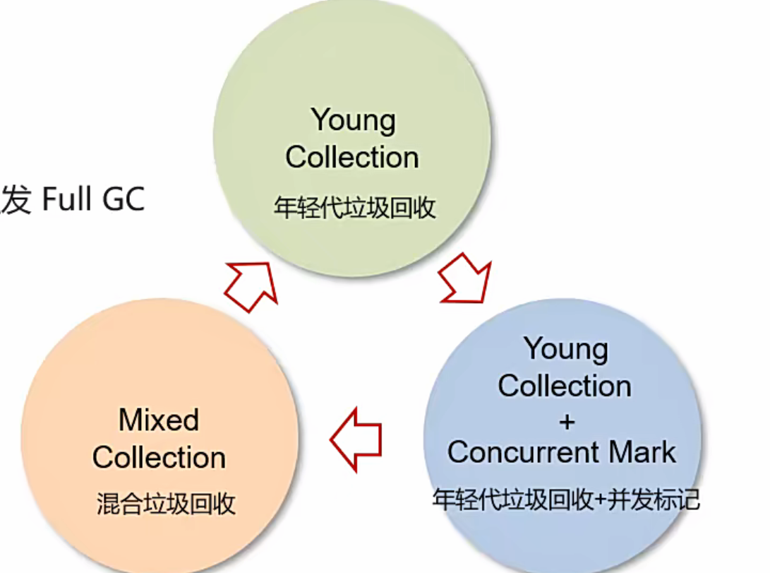 - Mixed GC 新生代 +老年代部分区域的垃圾回收, G1 收集器特有