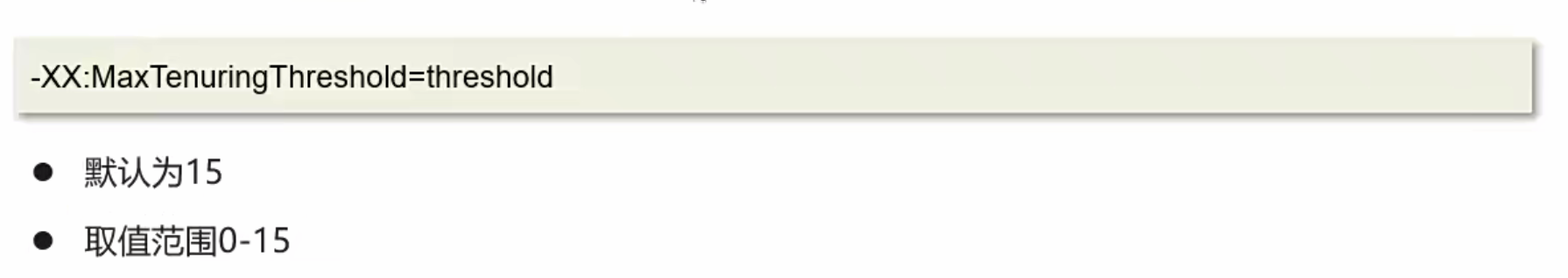- 当幸存区对象熬过几次回收 (最多15次), 晋升到老年代 (幸存区内存不足或大对象会导致提前晋升)