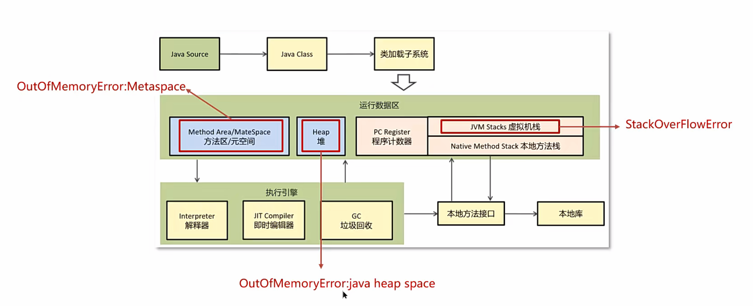 - 如果方法区域中的内存无法满足分配请求,则会抛出OutOfMemoryError: Metaspace