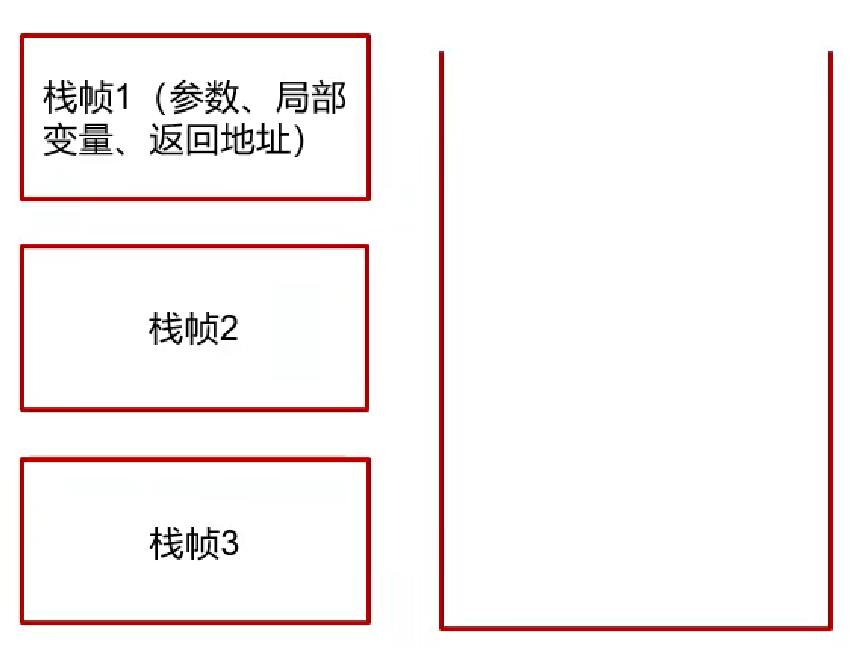 - 栈帧过多导致栈内存溢出,典型问题:递归调用