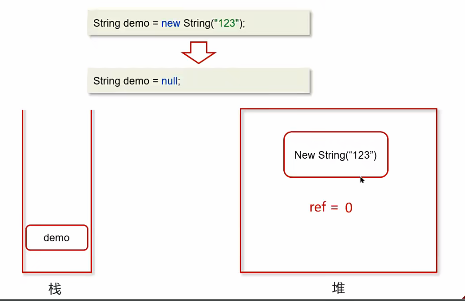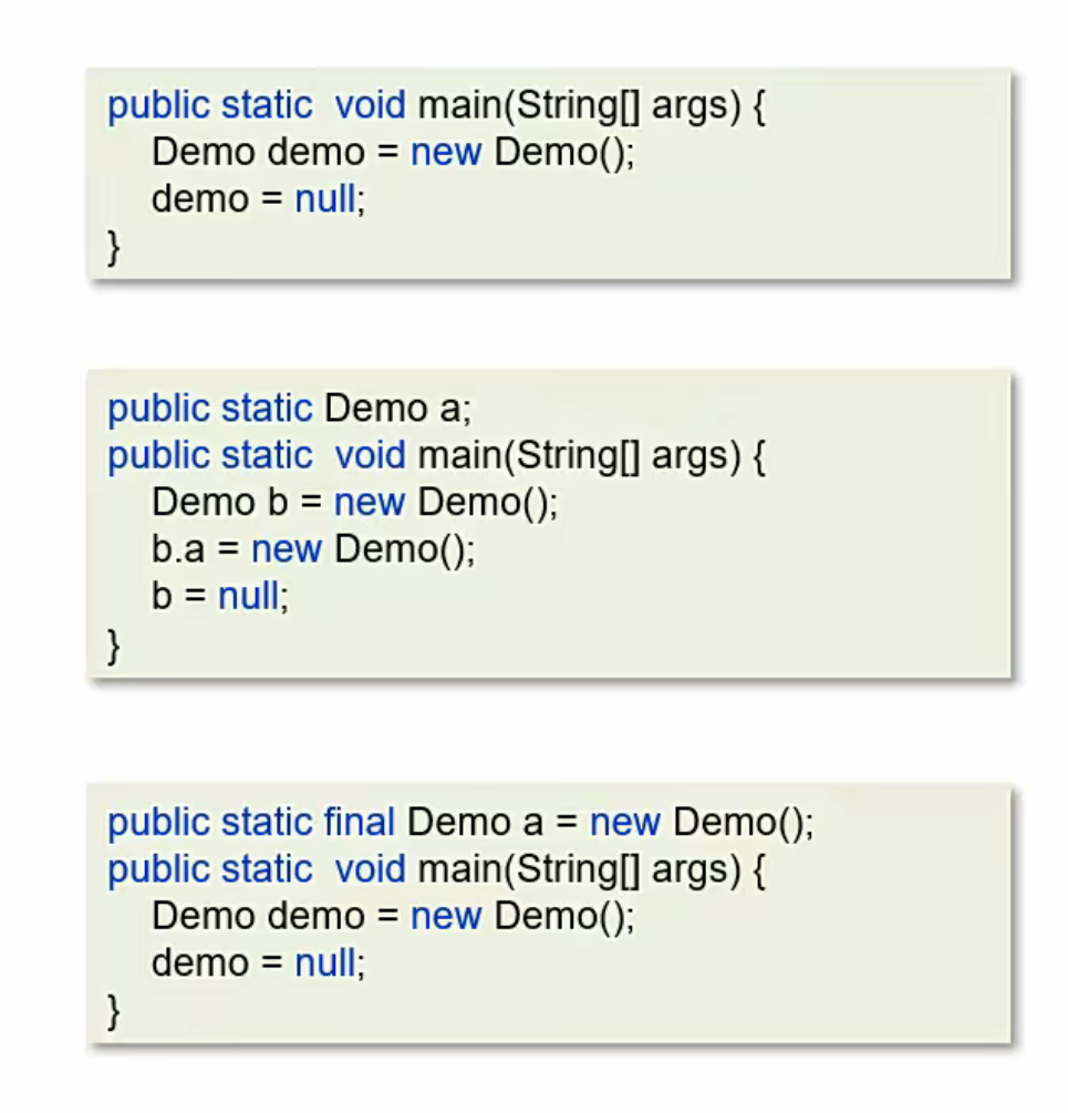 - 强引用:只有所有 GC Roots 对象都不通过【强引用】引用该对象,该对象才能被垃圾回收