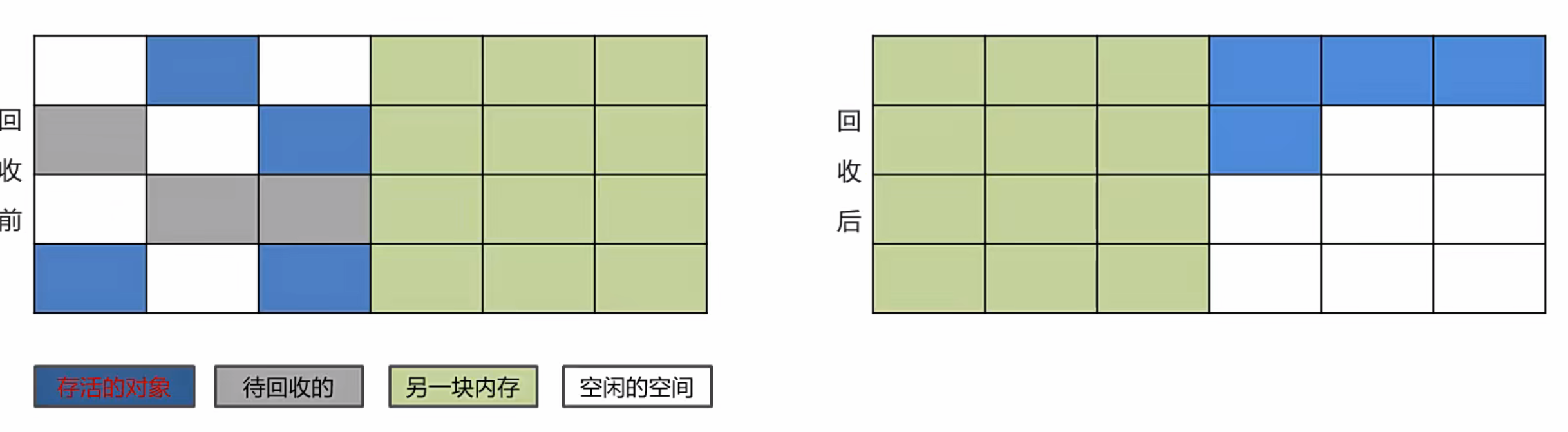 - 经过一段时间后伊甸园的内存又出现不足, 标记eden区域to区存活的对象,将存活的对象复制到from区