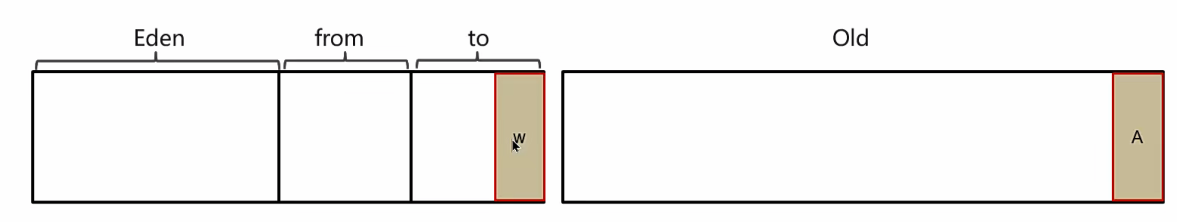 - 当伊甸园内存不足, 标记伊甸园与 from(现阶段没有)的存活对象