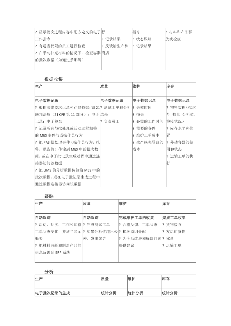 6. MES功能包括资源分配、工单管理、数据收集和分析等。