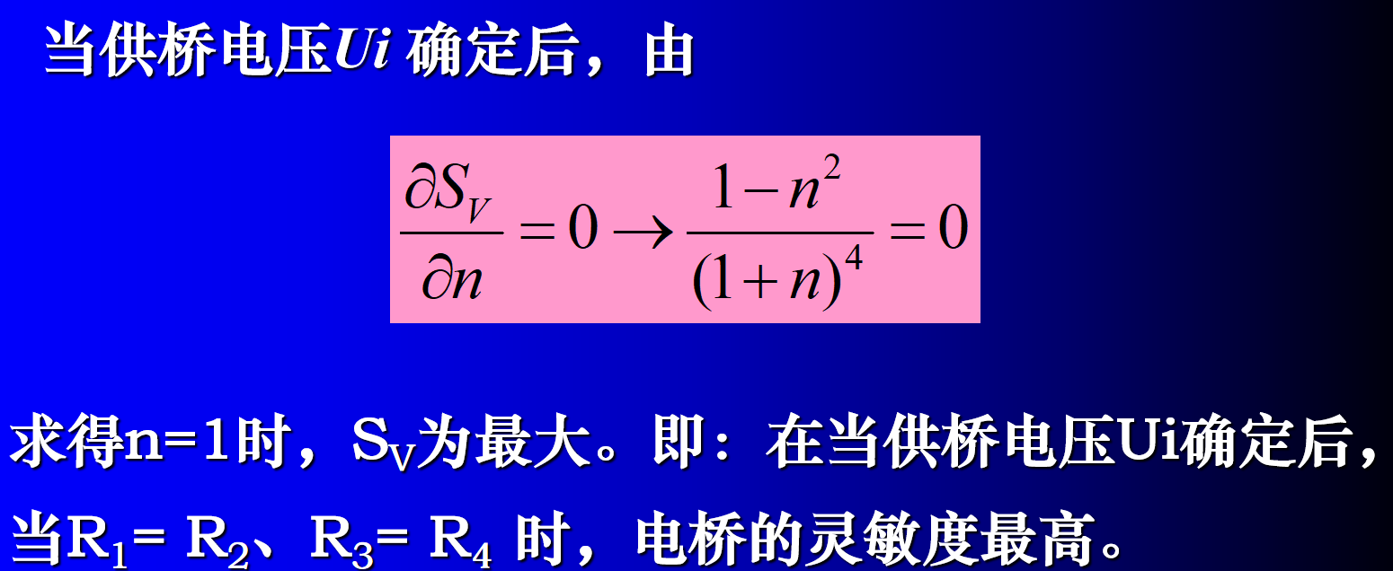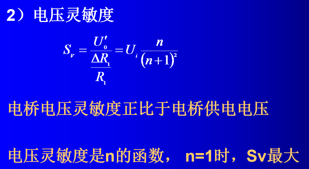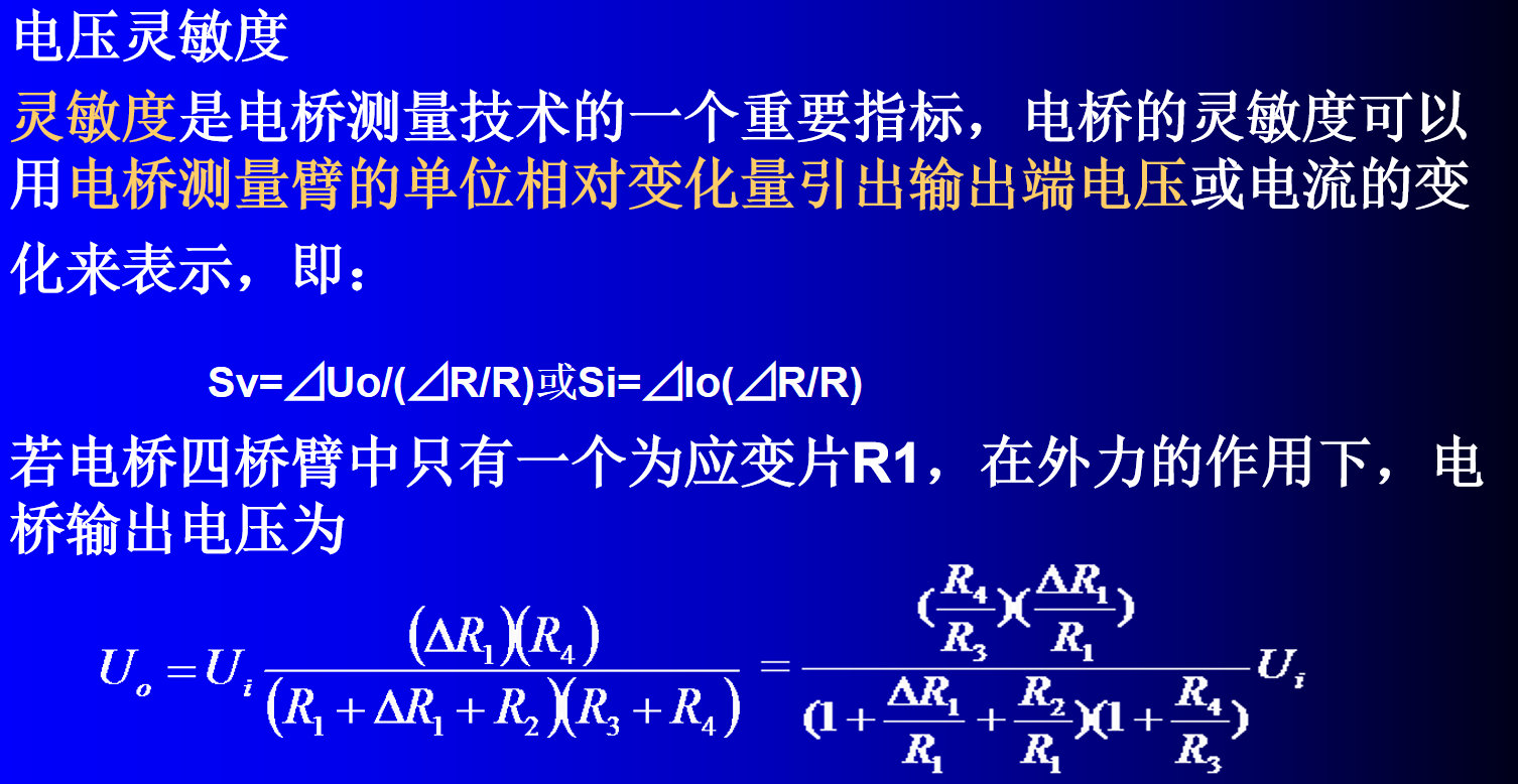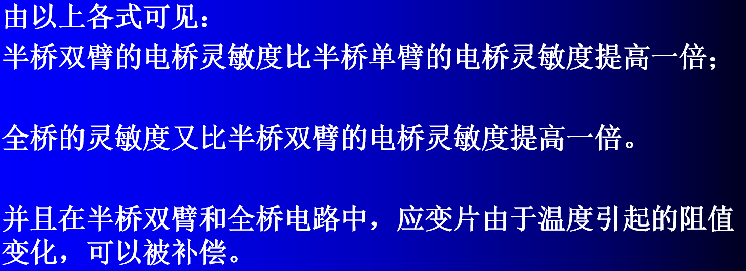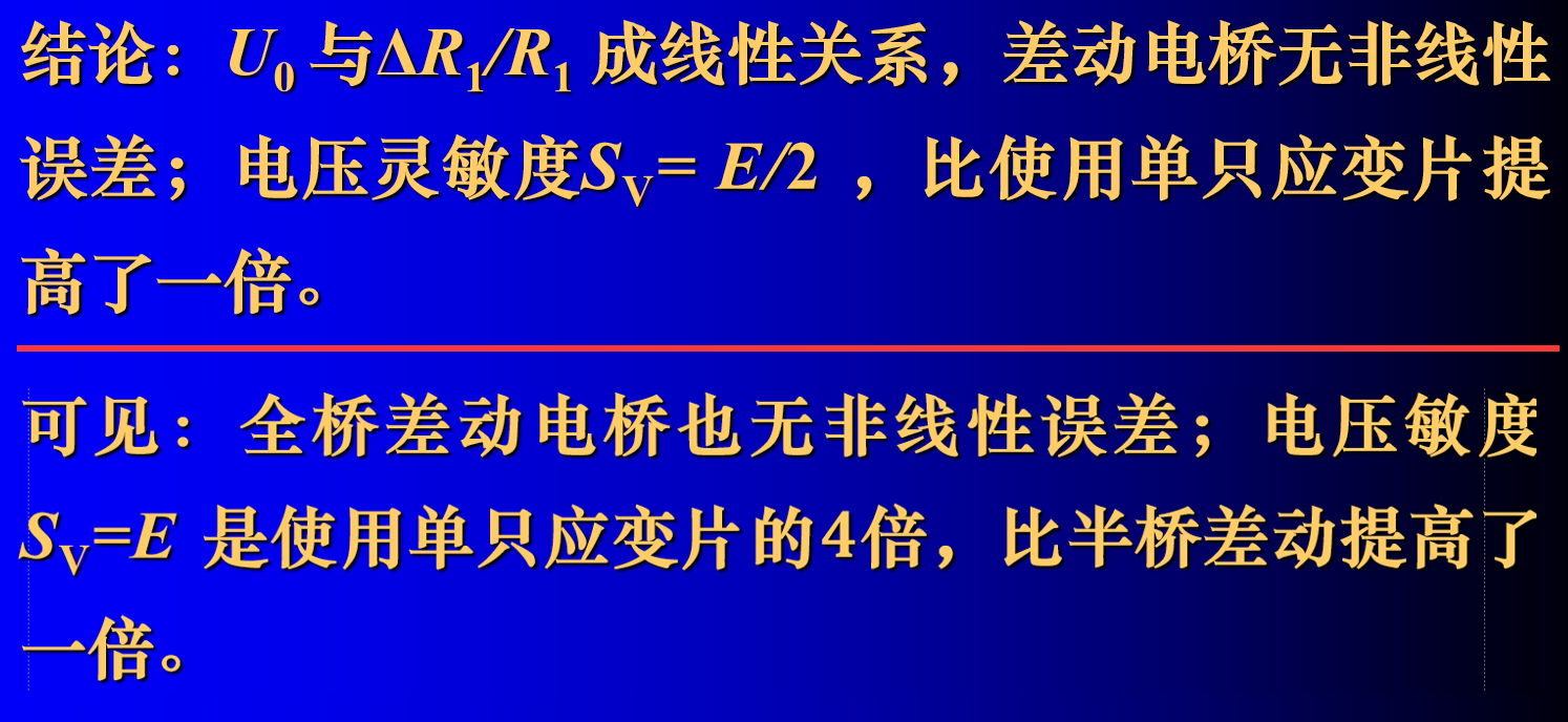 - 全桥差动电路的输出灵敏度是电桥单臂工作时的4倍;