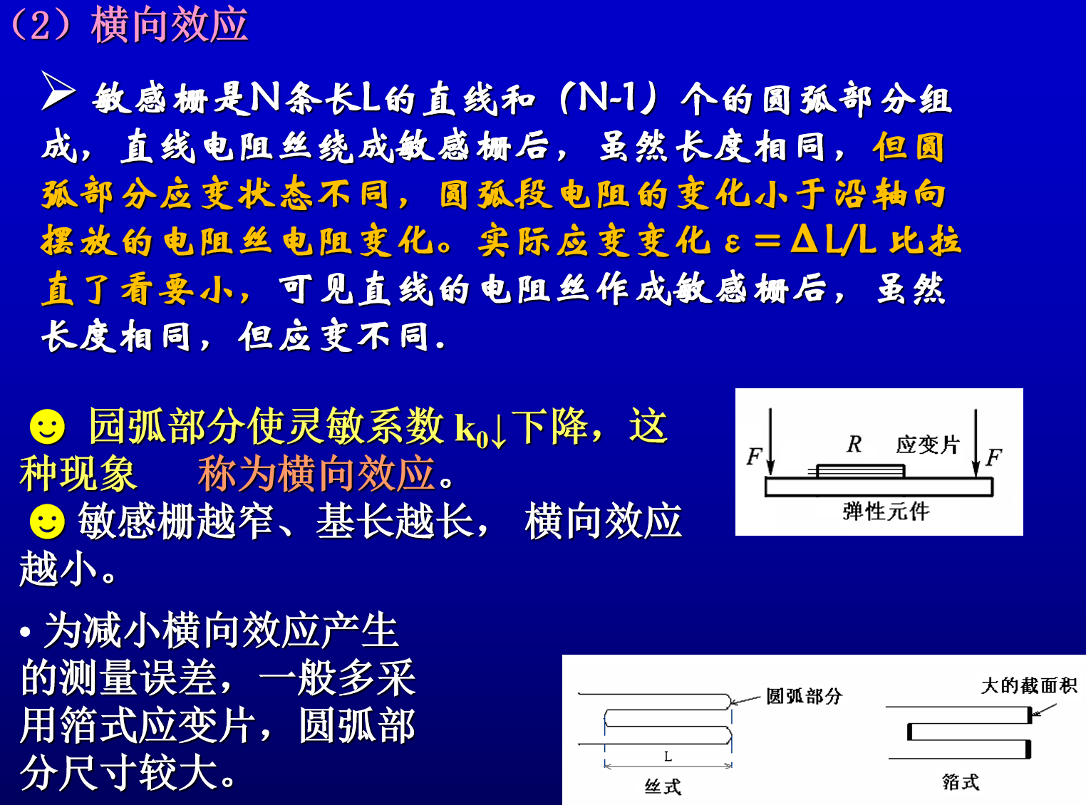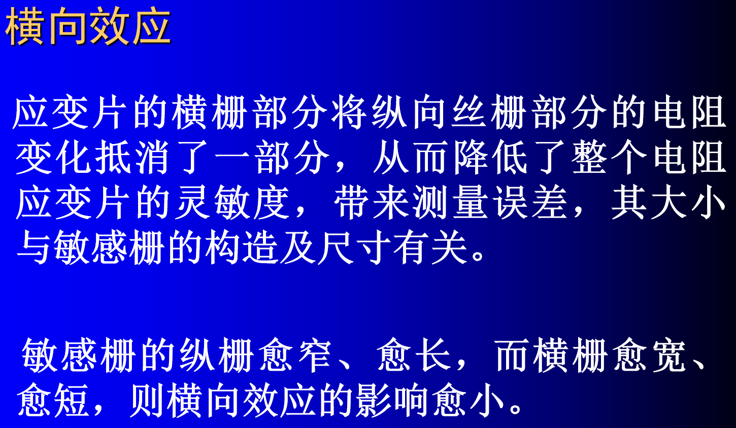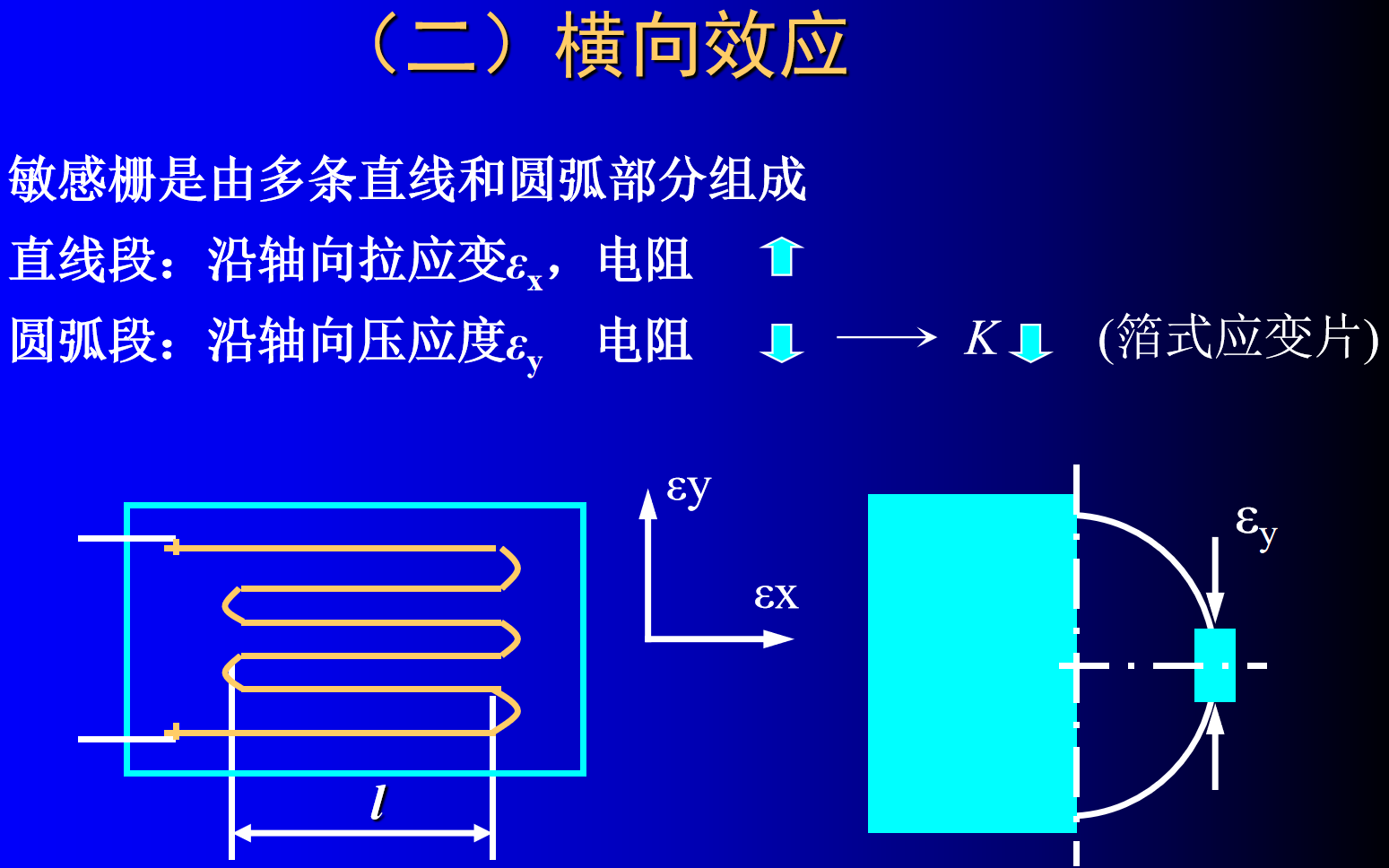 - 究其原因,主要是在应变片中存在着所谓的横向效应。