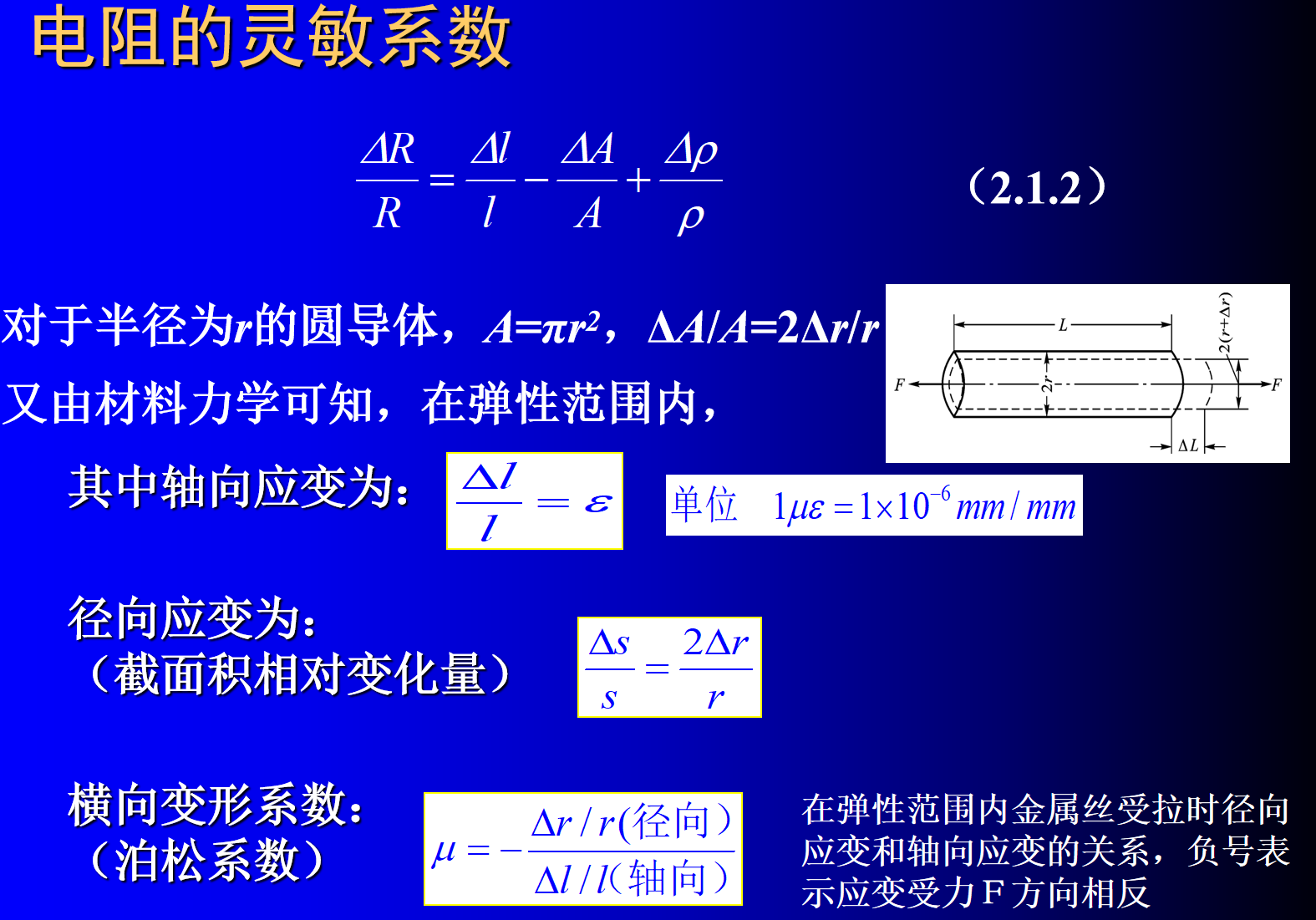 - 应变片电阻的相对变化与应变片纵向应变成正比。