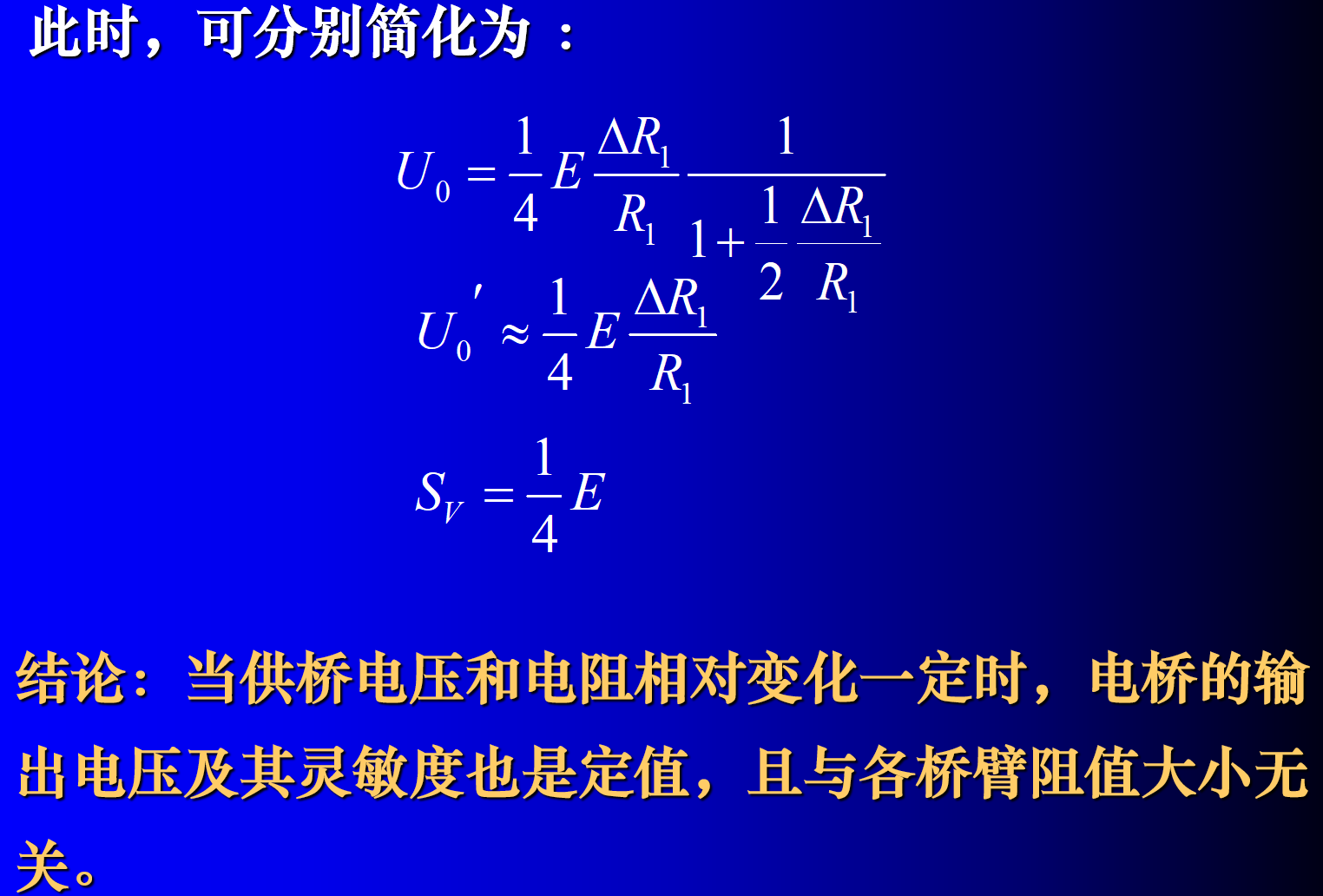 结论:电桥单臂工作时,灵敏度是源电压的1/4。