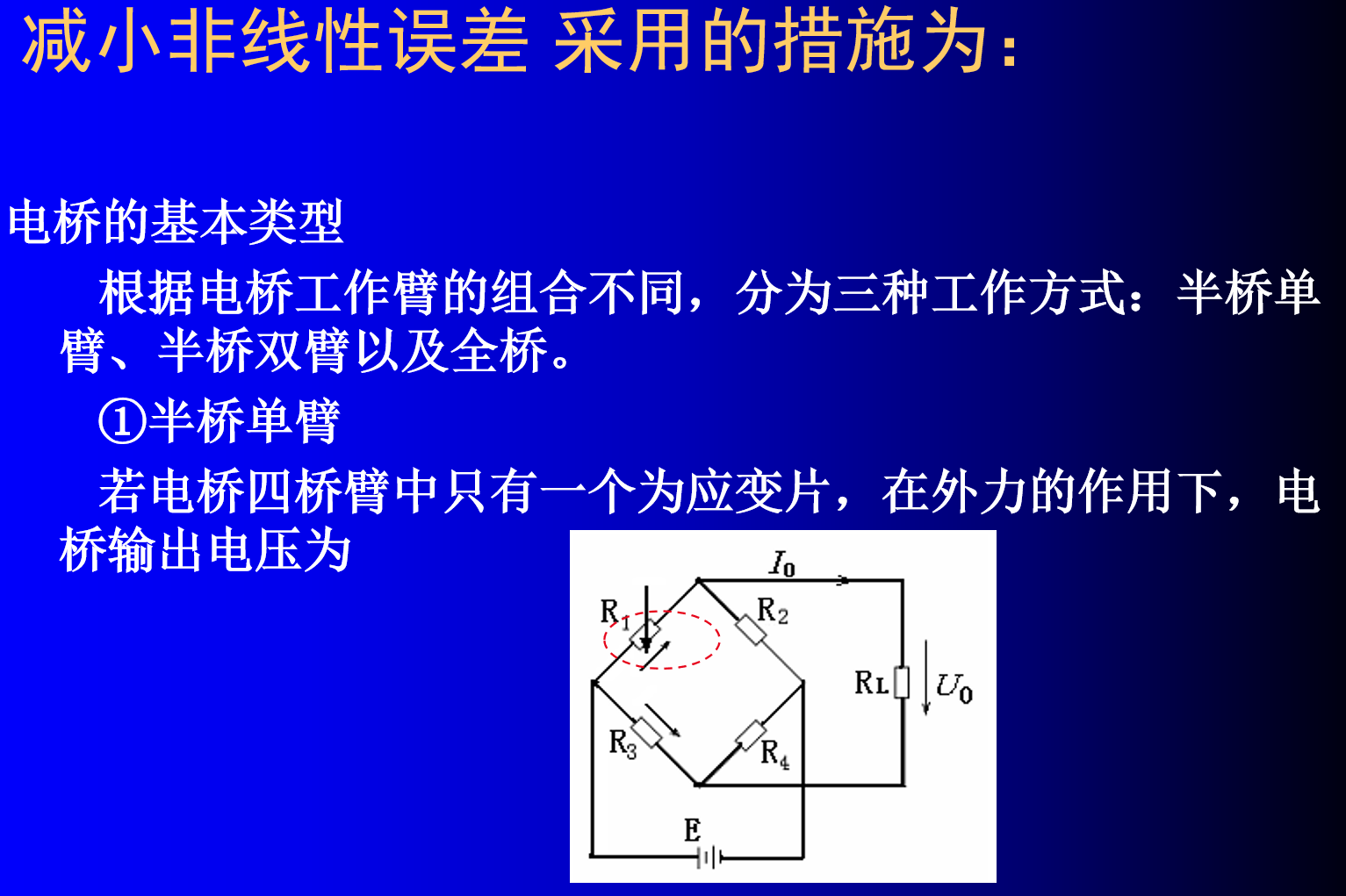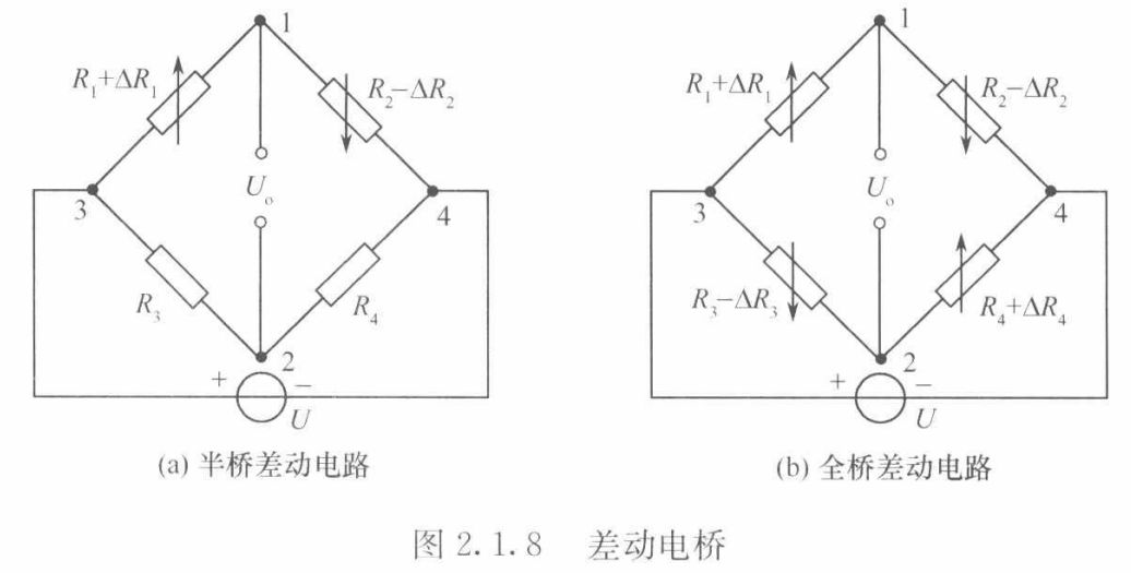 为了消除非线性误差,在实际应用中,常采用半桥差动电路、全桥差动电路。