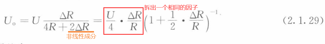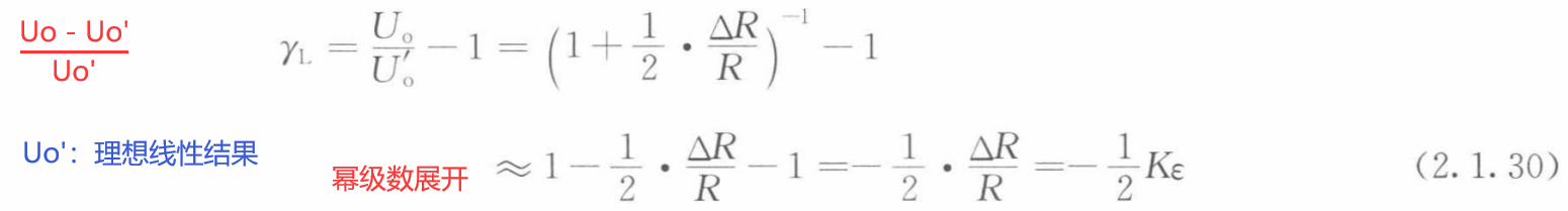 式(2.1.27)的线性关系是在应变片的参数变化很小,即∆R << R的情况下得出的。