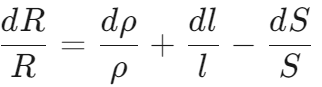 当金属丝受到拉力作用时,金属丝将沿轴线伸长,伸长量设为∆l,截面积相应减小∆S,电阻率的变化设为∆ρ。