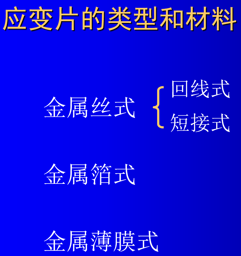 电阻应变片分为丝式应变片、箔式应变片、薄膜应变片3种。