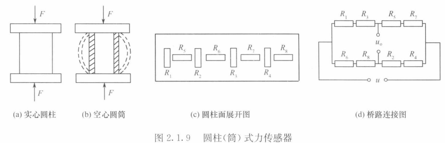 圆柱(筒)式力传感器的弹性元件分为实心和空心两种,如图2.1.9(a)、(b)所示。