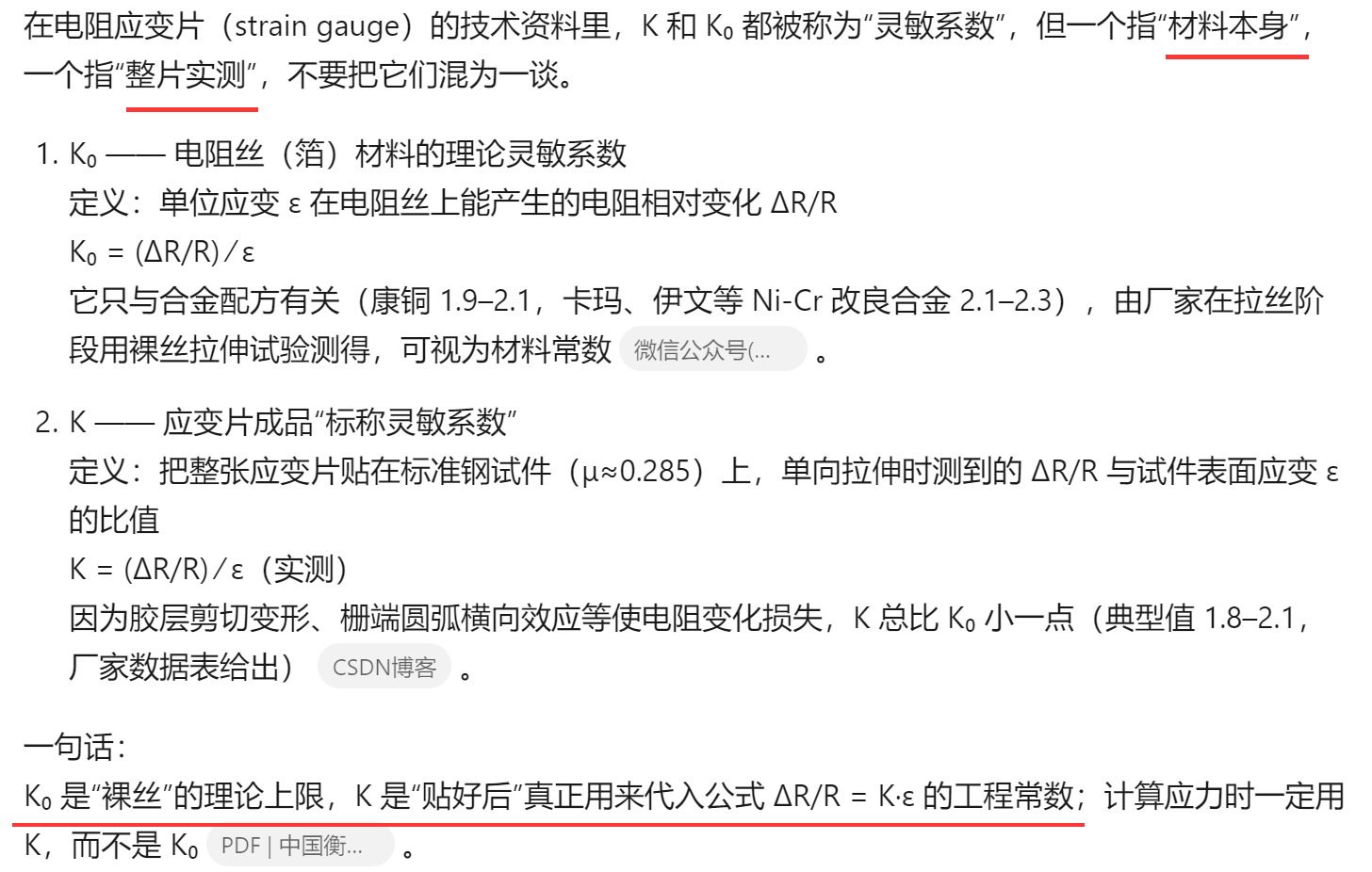 显然K0越大,单位纵向应变所引起的电阻相对变化越大,说明越灵敏。