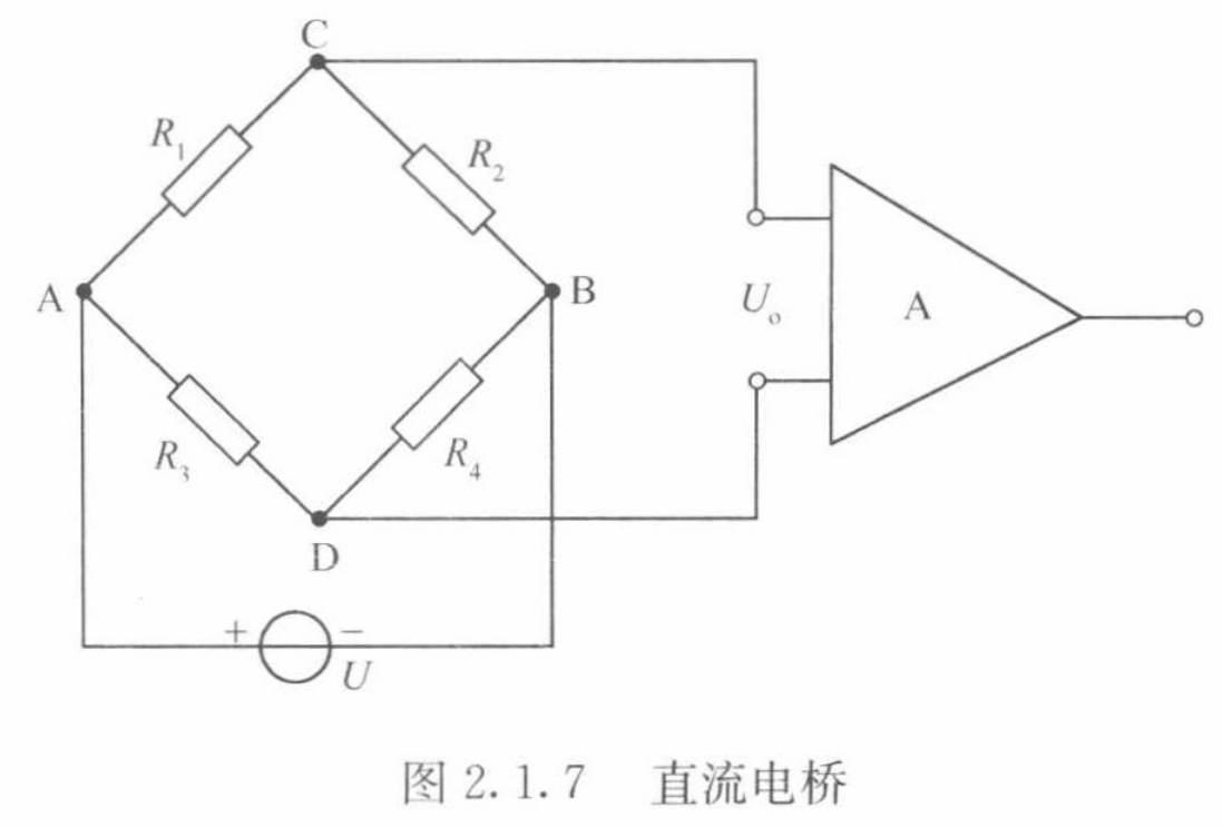 因此目前大部分电阻应变式传感器的电桥输出端与直流放大器相连,如图2.1.7所示。