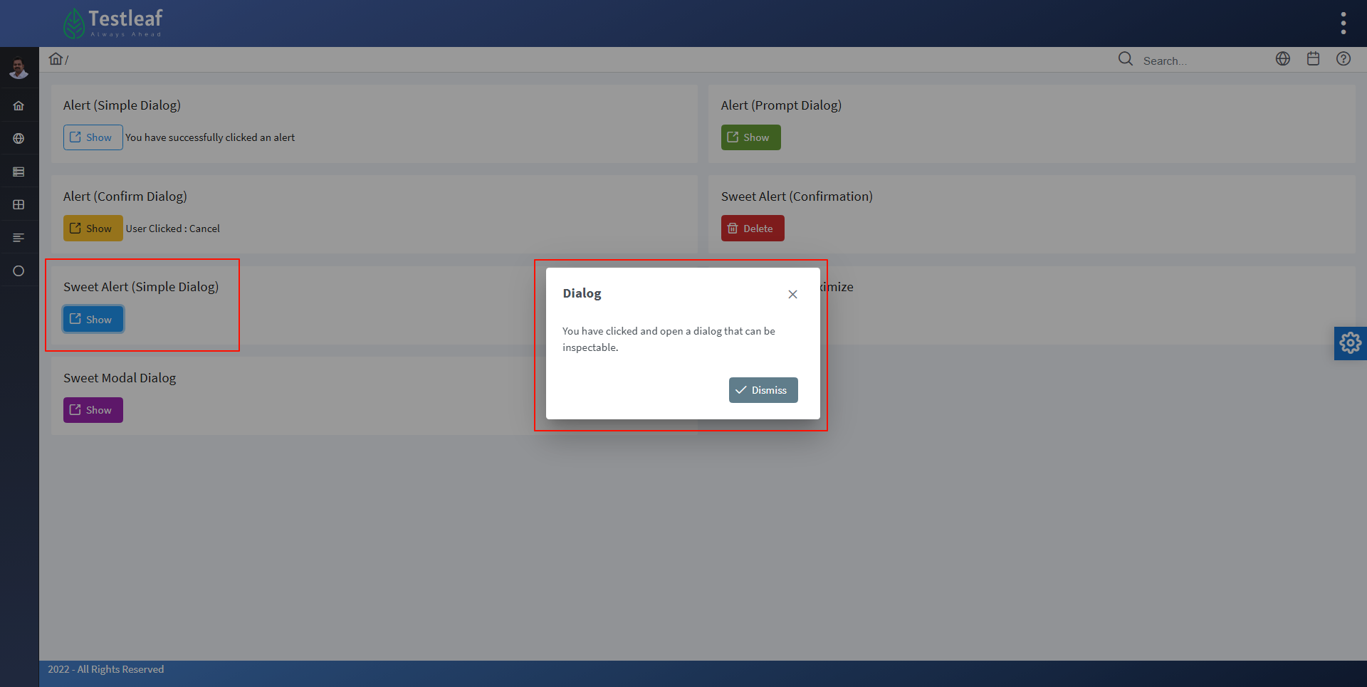 alert.dismiss()# Sweet Alert (Simple Dialog),是一个自定义的弹框库