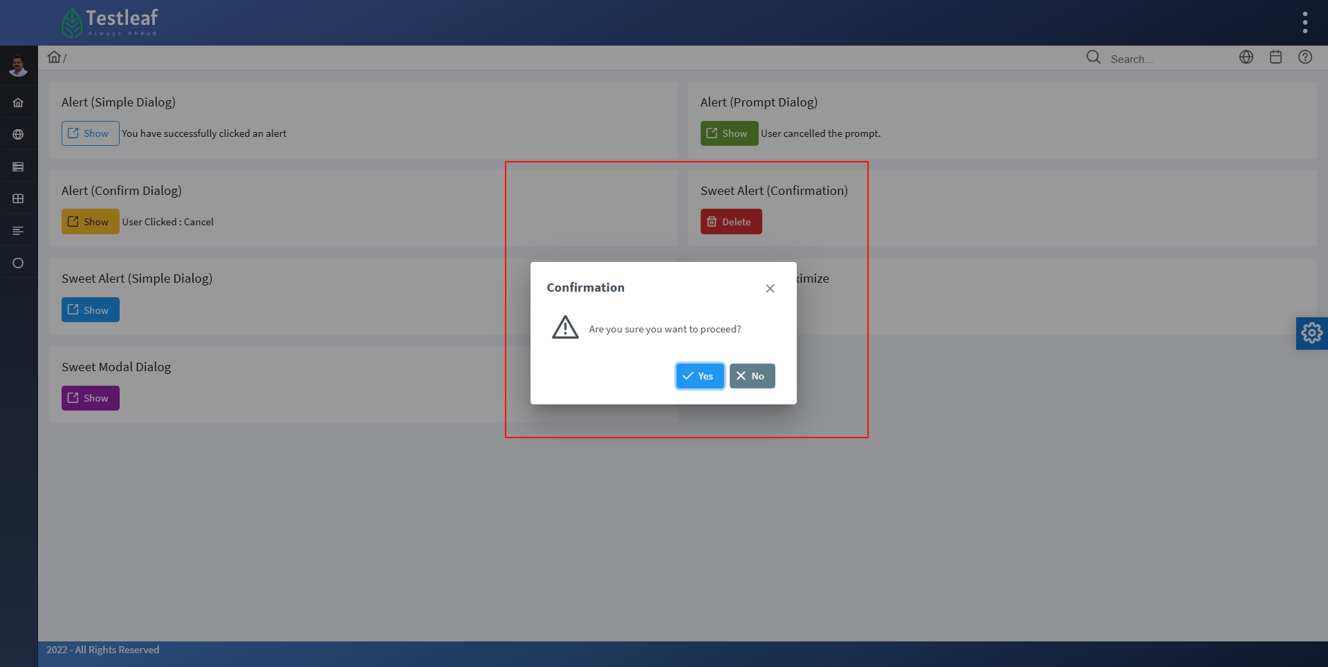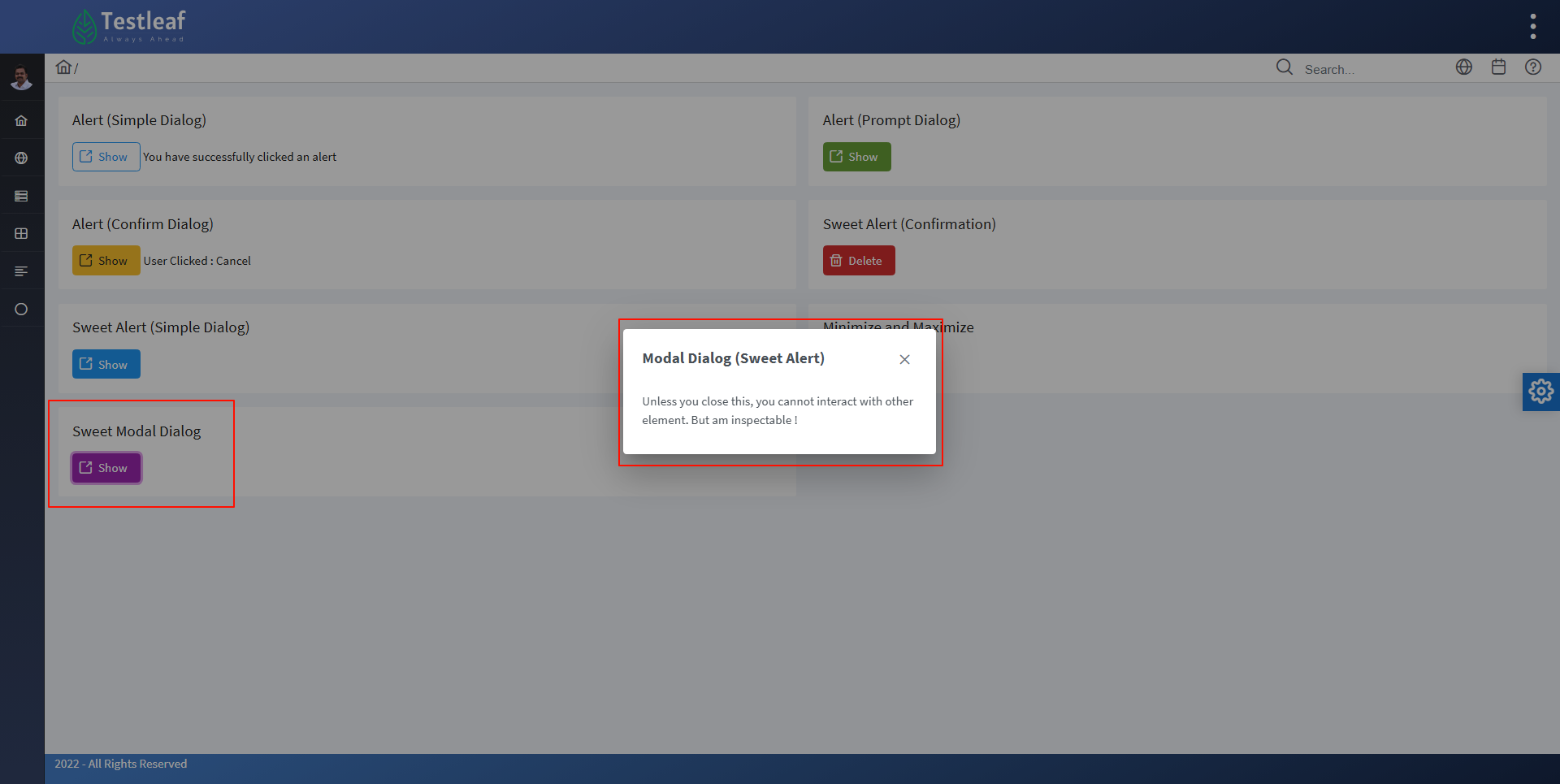 driver.find_element(By.XPATH, '//*[@id="j_idt88:j_idt98"]/span[2]').click()# Sweet Modal Dialog,是一个自定义的弹框库