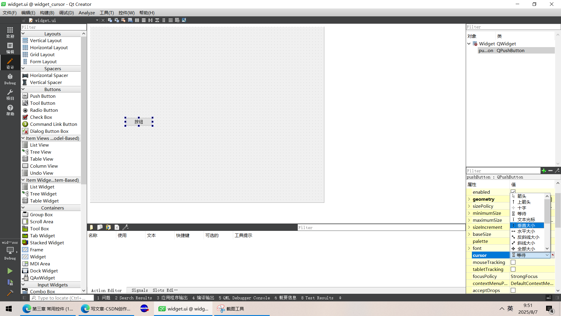 {ui->setupUi(this);this->setCursor(QCursor(Qt::WaitCursor));//给当前页面设置等待光标