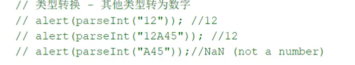 parseInt方法:讲其他类型的数据转化成数字,示例如下:
