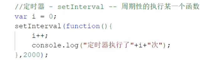 定时器:setInterval-->>周期性执行函数,setInterval(函数,周期(单位ms))
