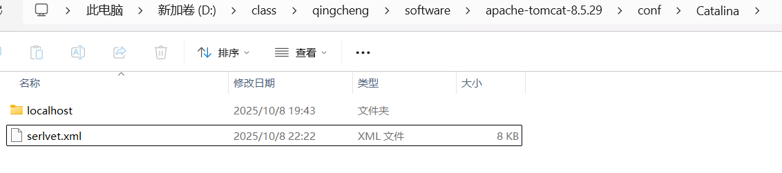 三、进入到 Tomcat下/conf/Catalina/目录,然后新建一个任意名字的xml文件,将第二种方法的xml考进去即可。