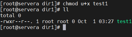 u用户对应的权限是rw-,现在为他增加一个x权限