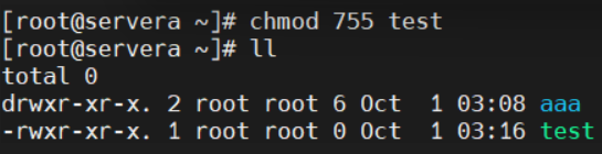 3.所有设置rw- r-- r--就是 chmod 644 test1
