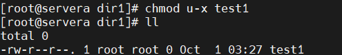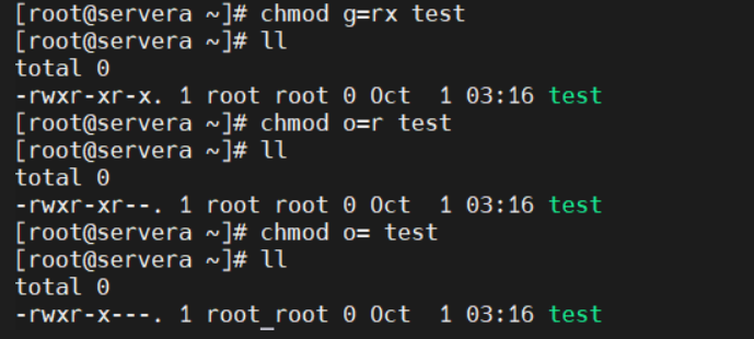 本来是rwxr-xr--,使用了chmod o= test 变成了rwxr-x---