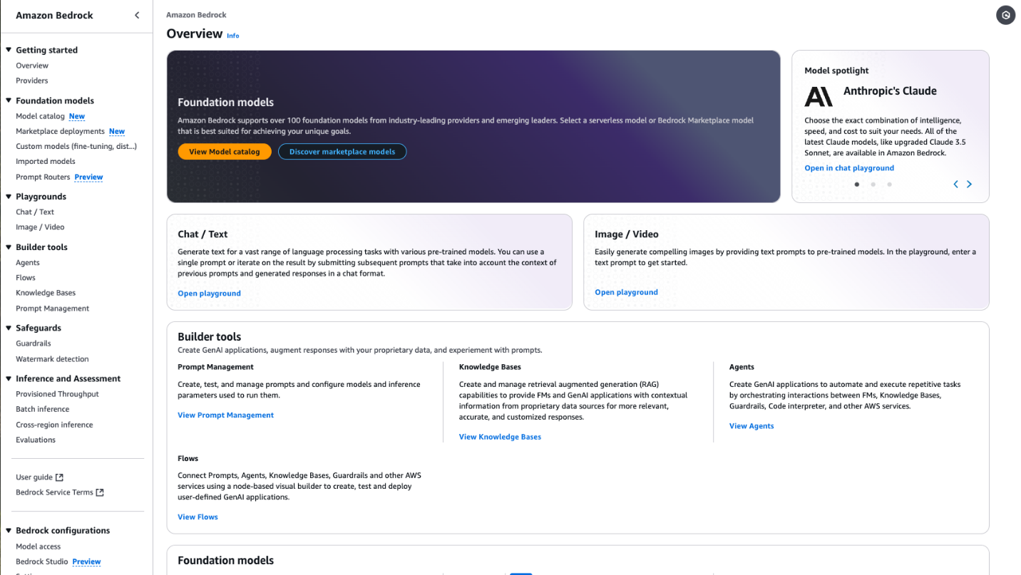 在Amazon Bedrock 中选择专有和开源 FMs 的能力为组织提供了优化特定需求的灵活性。开源模型支持具有成本效益的部署,并能完全控制模型工件,使其成为需要定制、成本优化或模型透明度的场景的理想选择。这种灵活性与Amazon Bedrock 的统一 API 和企业级基础设施相结合,使组织能够构建能够适应不断变化的需求的强大 AI 战略。