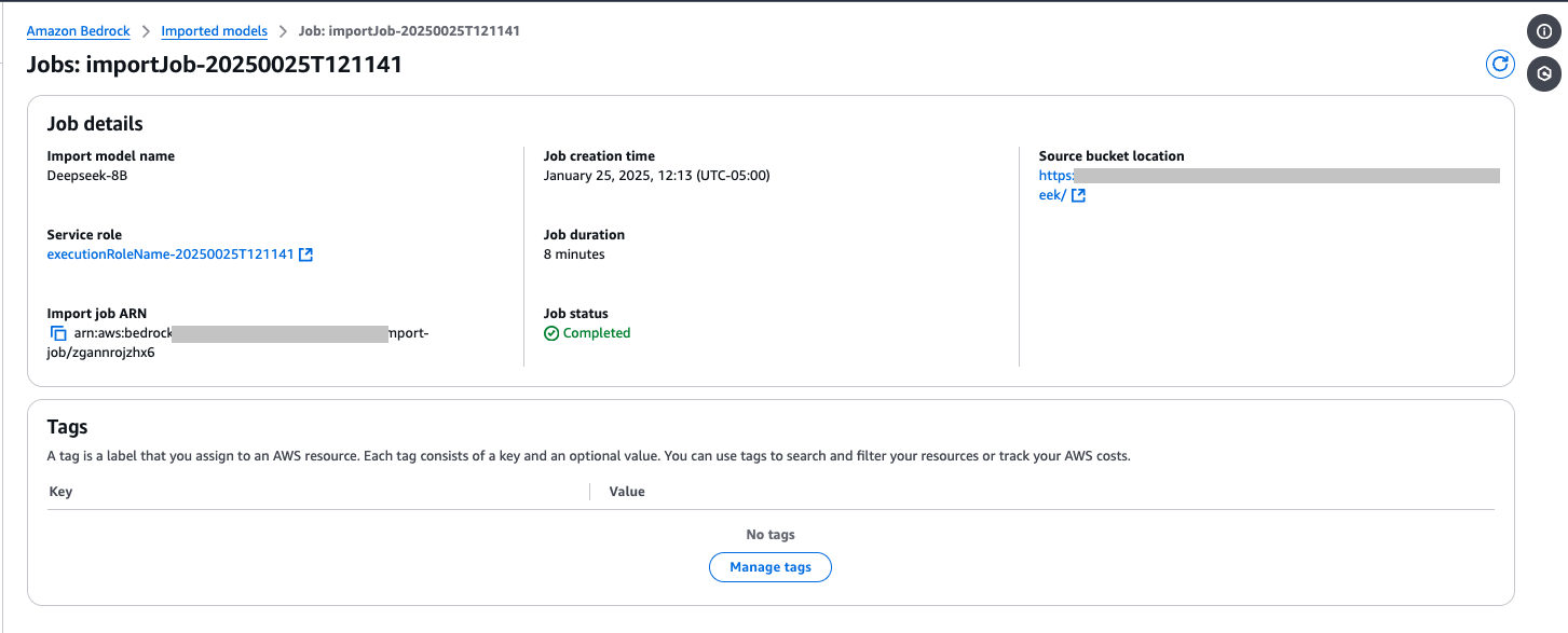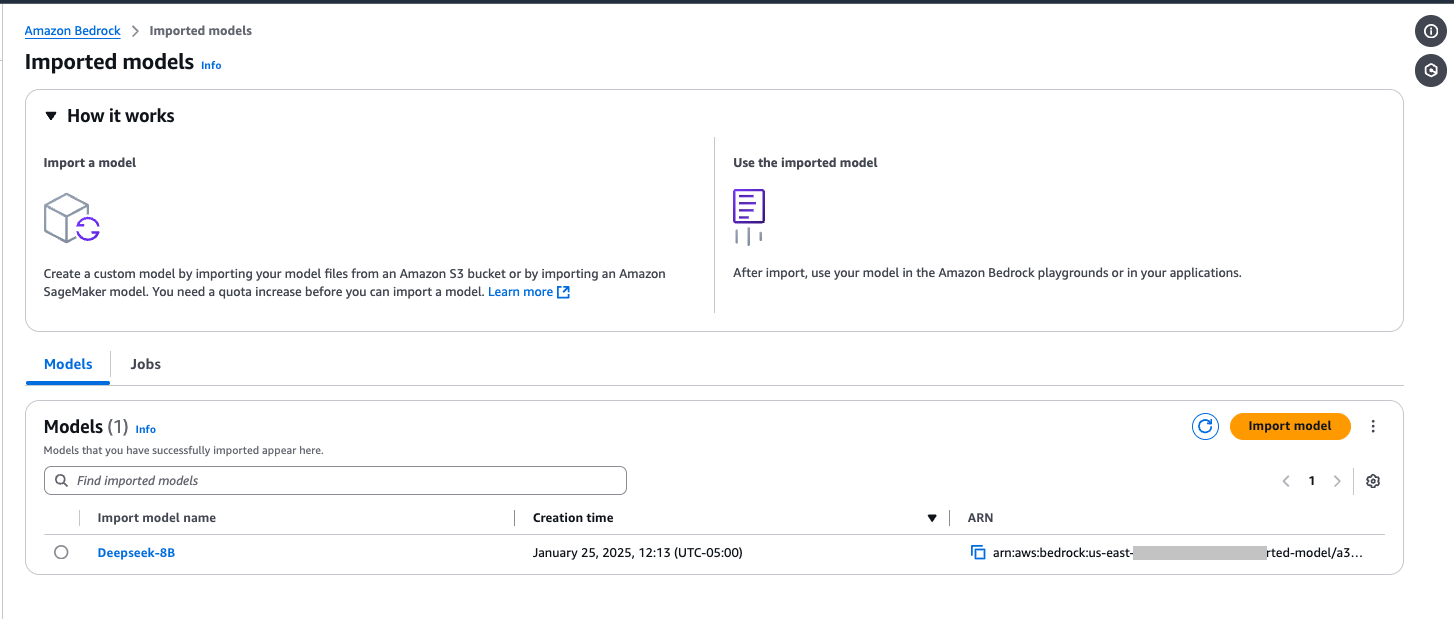 模型导入时间因导入的模型而异,可能需要几分钟(例如,Distill-Llama-8B 模型可能需要 5-20 分钟才能完成)。