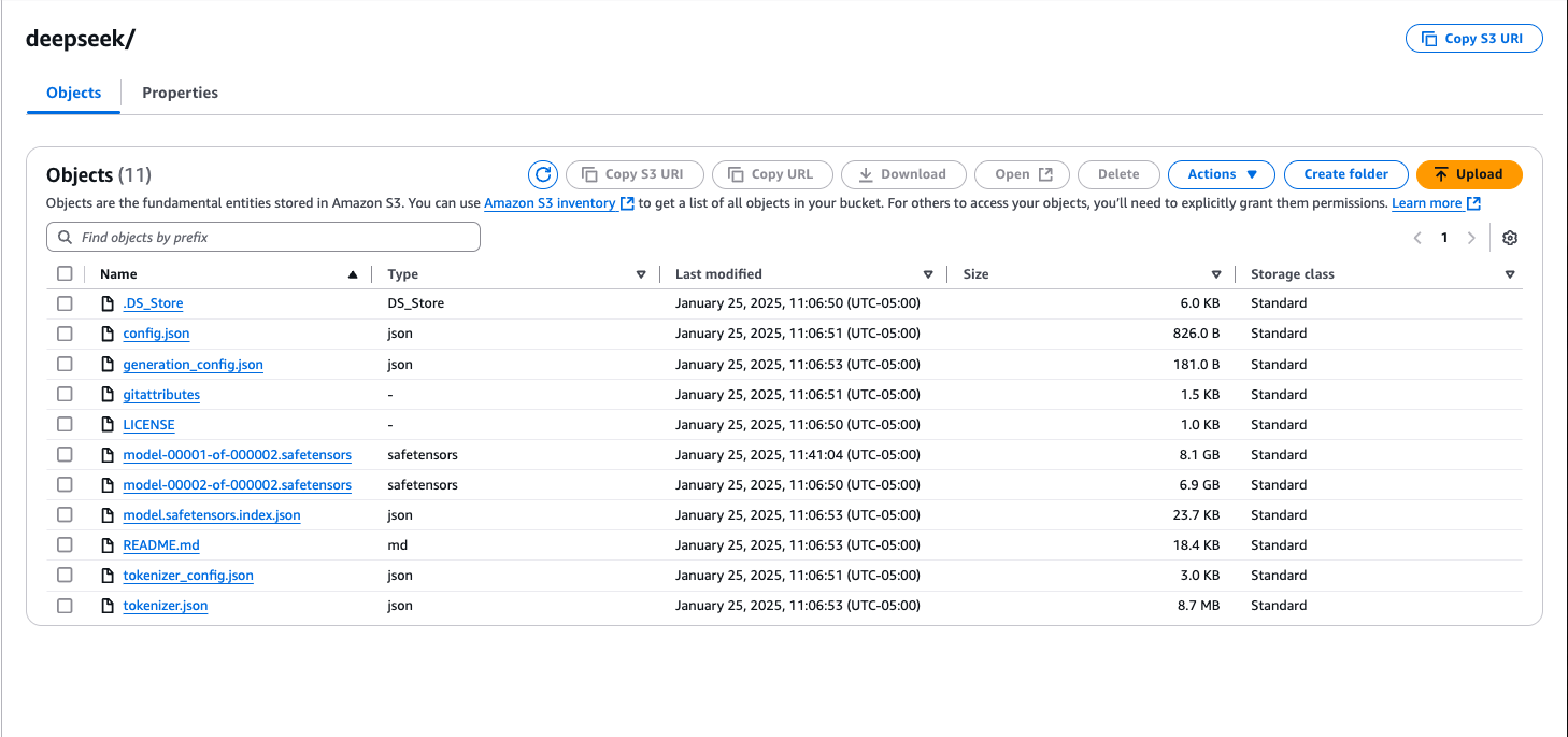 - 从 Hugging Face 的以下链接之一下载 DeepSeek-R1-Distill-Llama 模型工件。根据要部署的模型选择链接: