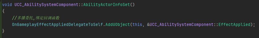 {//多播委托,绑定回调函数OnGameplayEffectAppliedDelegateToSelf.AddUObject(this, &UCC_AbilitySystemComponent::EffectApplied);