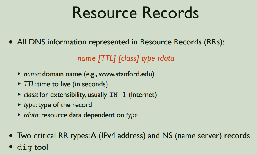 rdata:记录的具体内容,取决于type,如果type是A,那么data就是一个IPV4地址。A records(address records )会告诉你IP地址,NS records则是指示你需要的权威服务器的域名。