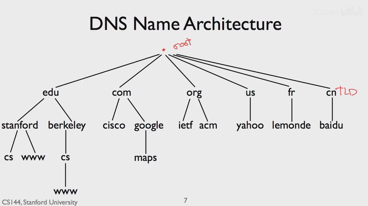 位于顶部的root是根域名服务器,全球只有13个根服务器。服务器采取高度复制的特性,不仅提高了网络的健壮性,而且提高了性能。(让用户访问里他们最近的那台服务器)