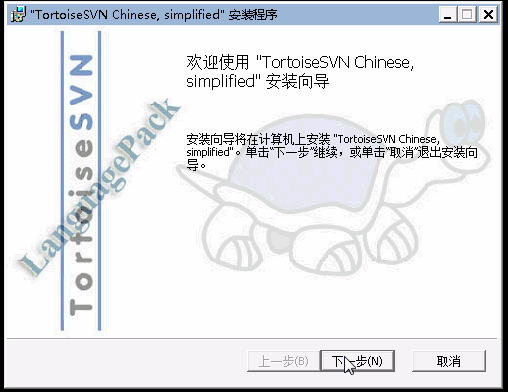 所以在安装 TortoiseSVN 和汉化包的时候要保证 TortoiseSVN 的版本要和汉化包的版本一致,如果不一致就换成一致的。