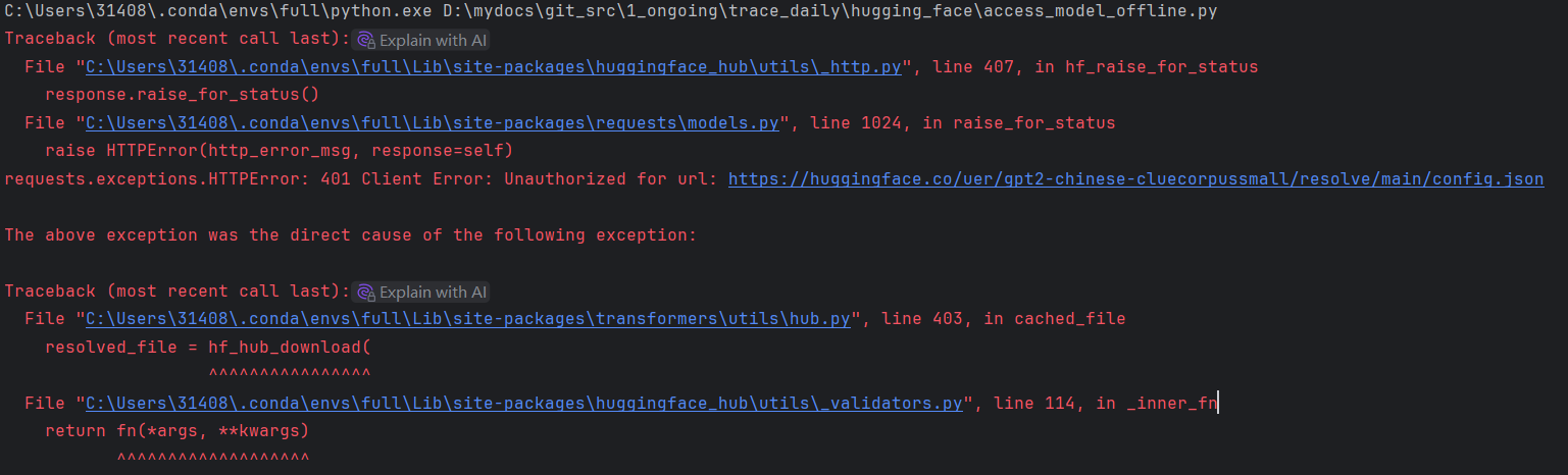 Hugging face下载模型错误:401 Client Error: Unauthorized for url